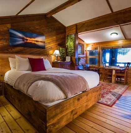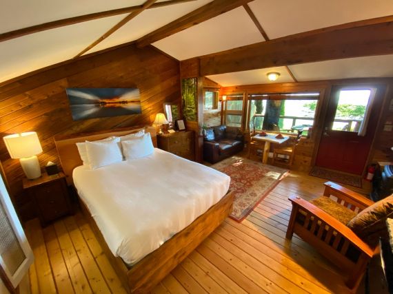 With breath-taking, panoramic ocean views, this cozy room sleeps two and is a favorite with romantics and reclusives. It has a private entrance, private sundeck, private washroom with large soaker tub, queen bed, sofa and gas fireplace. The kitchenette area has a mini fridge, microwave, coffee maker and toaster.